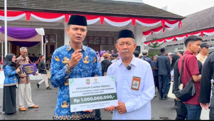 BERITA CIAMIS, PASUNDANNEWS.COM – Badan Amil Zakat Nasional (Baznas) Ciamis menyalurkan bantuan 100 unit Rumah Layak Huni (RLH) untuk masyarakat kurang mampu di momen Hari Jadi Ciamis ke-383.