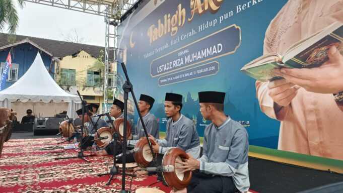 BERITA BANJAR, PASUNDANNEWS.COM – Grup Marawis Al Banjari Lapas Banjar tampil memukau dalam kegiatan tabligh akbar bersama Ustadz Riza Muhammad yang digelar di area komplek terminal Kota Banjar, Jumat (13/2/2026).