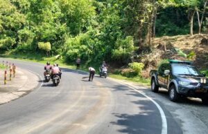BERITA PANGANDARAN, PASUNDANNEWS.COM- Kapolsek Kalipucang Polres Pangandaran bersama anggota membersihkan tumpahan solar di jalan raya wilayah Desa Putrapinggan, Kecamatan Kalipucang, Kabupaten Pangandaran, Senin (27/4/2026). Peristiwa...