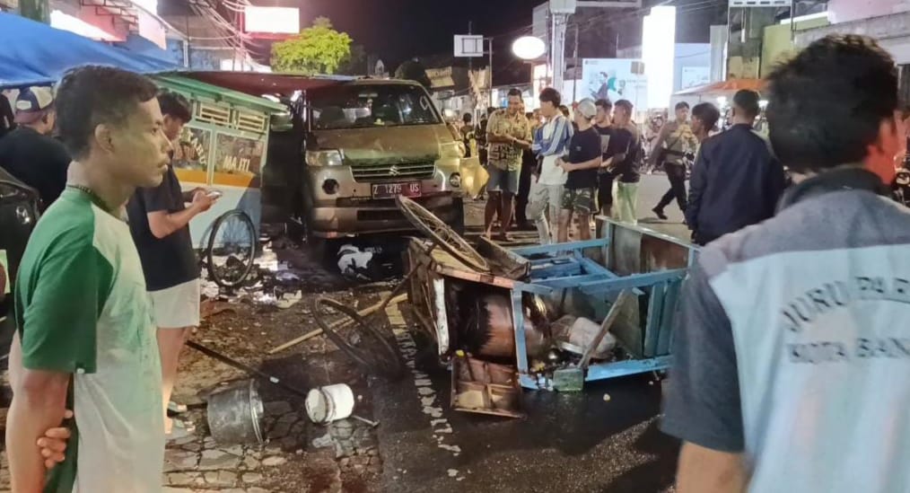 BERITA BANJAR, PASUNDANNEWS.COM — Sebuah minibus menabrak gerobak bakso dan sejumlah kendaraan di Jalan BKR, Kota Banjar, Kamis (27/11/2025) malam sekitar pukul 19.30 WIB. Peristiwa itu terekam kamera CCTV milik salah satu toko yang berada tak jauh dari lokasi kejadian.
