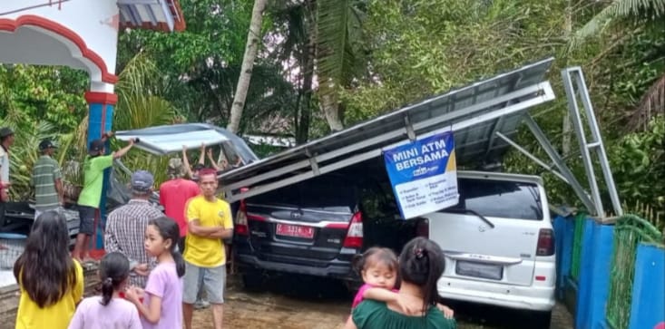 Rudi menjelaskan, kerusakan yang terjadi berada pada bagian atas kendaraan akibat tertimpa batang pohon kelapa yang tumbang saat hujan deras dan angin kencang melanda wilayah tersebut.