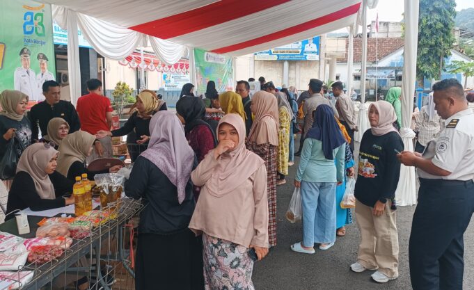 BERITA BANJAR, PASUNDANNEWS.COM – Dinas Koperasi, Usaha Kecil, Menengah, dan Perdagangan Kota Banjar (DKUKMP) menggelar pasar murah dalam rangka menjaga stabilitas harga di wilayah Kota Banjar tahun 2026, Kamis (26/2/2026). Kegiatan ini berlangsung di halaman Kantor Kecamatan Purwaharja dan disambut antusias warga yang sejak pagi telah memadati lokasi.