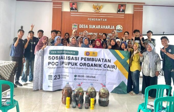 BERITA CIAMIS, PASUNDANNEWS.COM – Mahasiswa KKN (Kuliah Kerja Nyata) Fakultas Pertanian Unigal (Universitas Galuh) Ciamis menggelar sosialisasi pembuatan pupuk organik cair (POC) sebagai upaya pemanfaatan limbah pertanian, Sabtu (23/8/2025).
