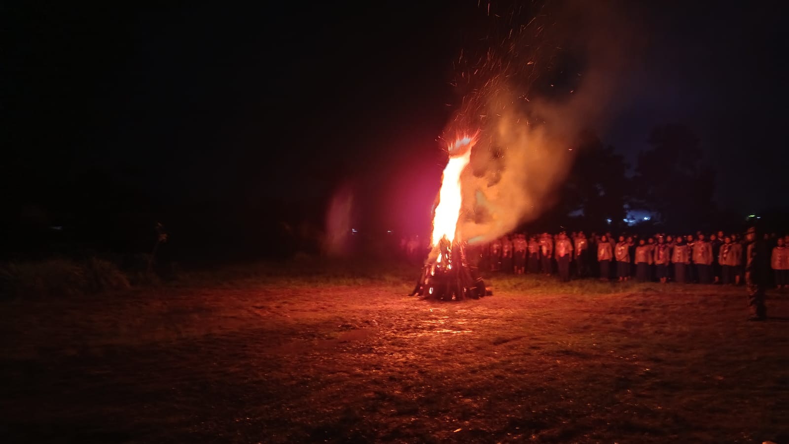 Puncak kegiatan ditandai dengan upacara api unggun yang digelar malam hari sebagai simbol kebersamaan dan semangat pengabdian.