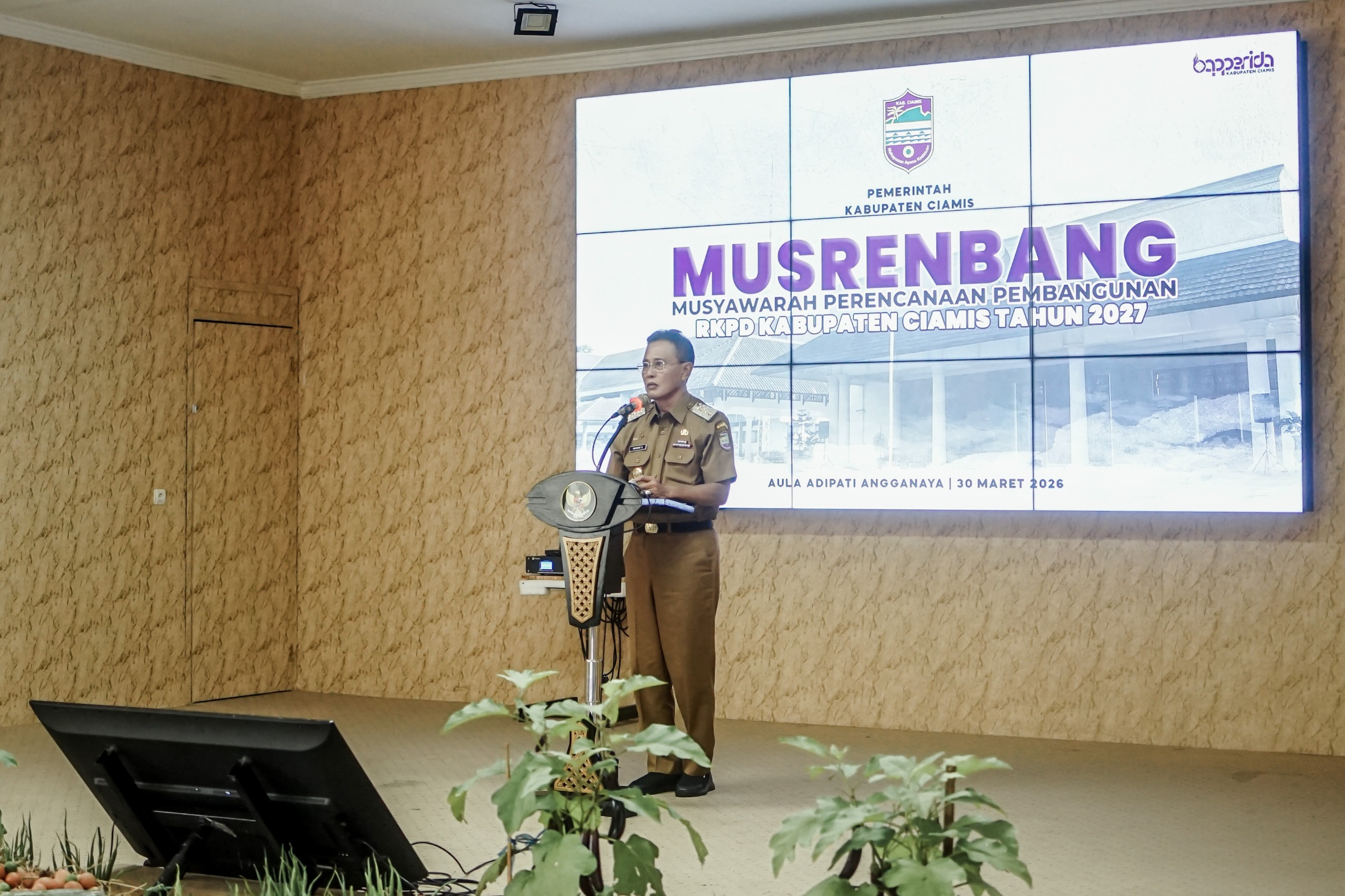 BERITA CIAMIS, PASUNDANNEWS.COM – Pemerintah Kabupaten Ciamis menyelenggarakan Musyawarah Perencanaan Pembangunan (Musrenbang) RKPD Tahun 2027 di Aula Adipati Angganaya Bapperida, Senin (30/3/2026).