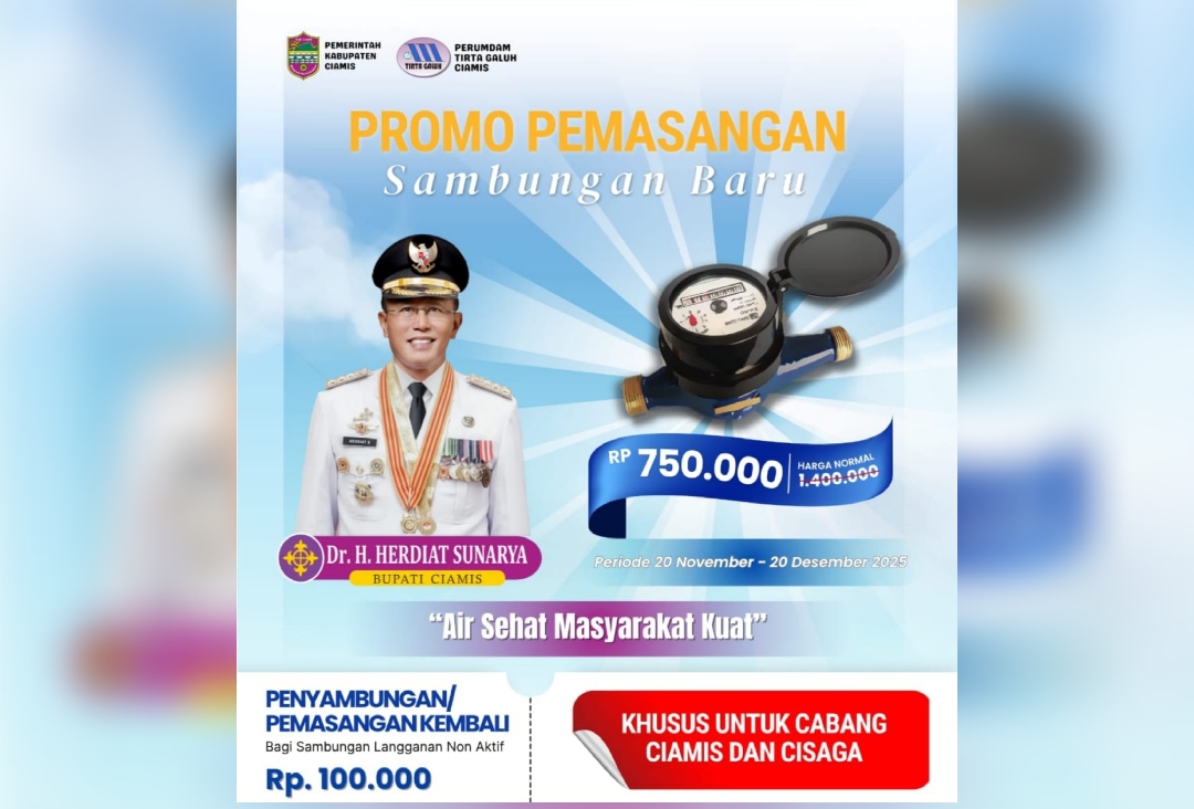 Promo berlaku mulai 20 November hingga 20 Desember 2025. Kepala Bagian Layanan Pelanggan, Dadan Firdaus Hielmy, menjelaskan program ini untuk memperluas layanan air bersih bagi masyarakat.