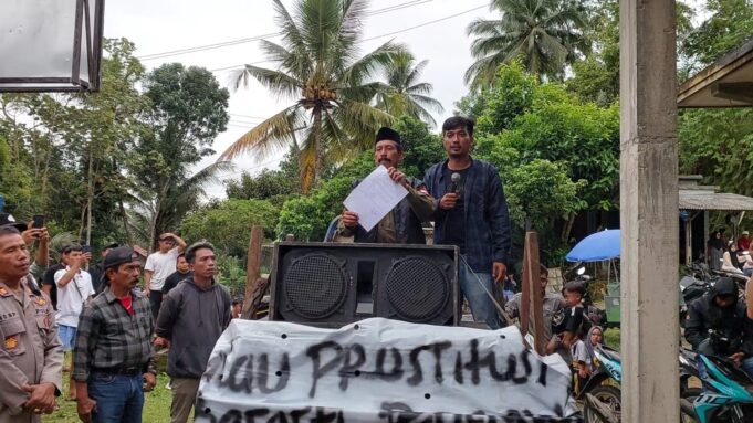“Kami menuntut hari ini juga kedua perangkat desa tersebut diberhentikan dari jabatannya,” kata Andri.