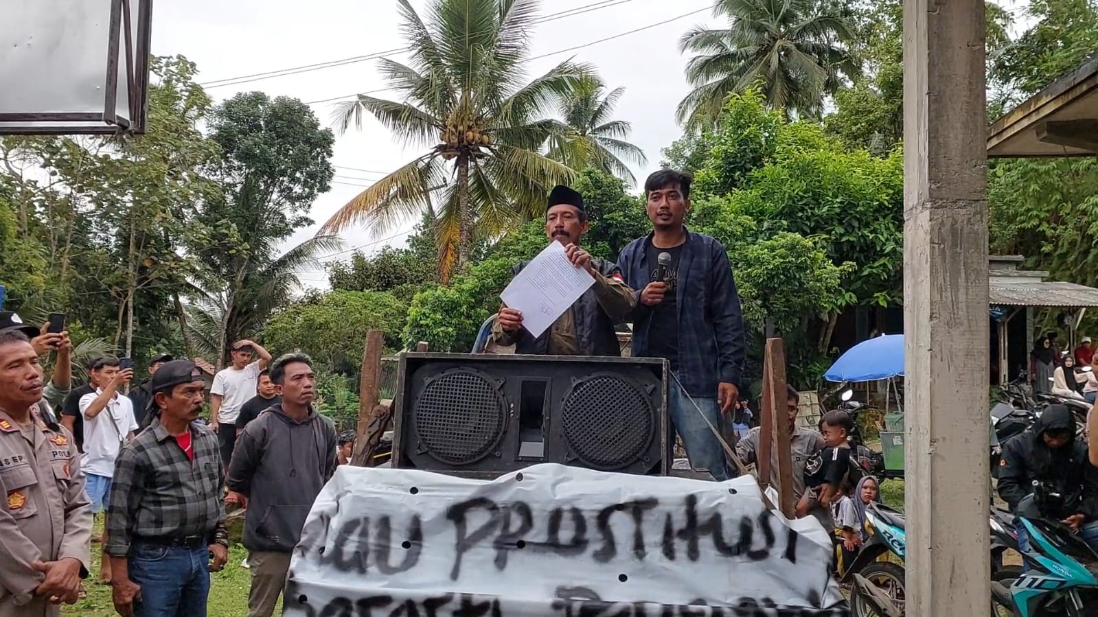 Koordinator aksi, Andri Irawan, menegaskan tuntutan warga agar kedua perangkat desa tersebut langsung diberhentikan.