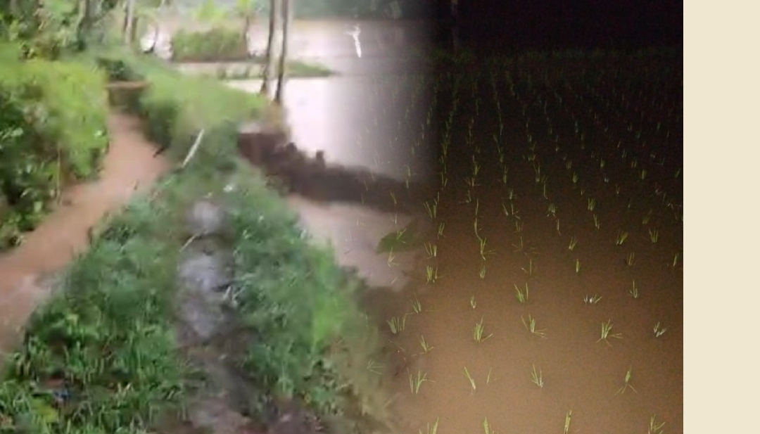 Menurut informasi yang dihimpun, derasnya intensitas hujan membuat debit air meningkat tajam hingga saluran irigasi tak mampu menahan tekanan.