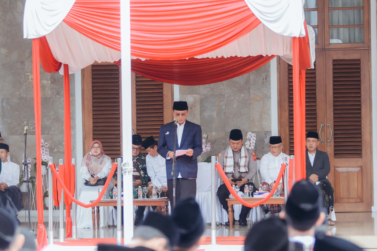 Bupati Herdiat mengawali sambutannya dengan mengajak seluruh peserta mendoakan korban tragedi di Pesantren Al-Khoziny, Sidoarjo, Jawa Timur.