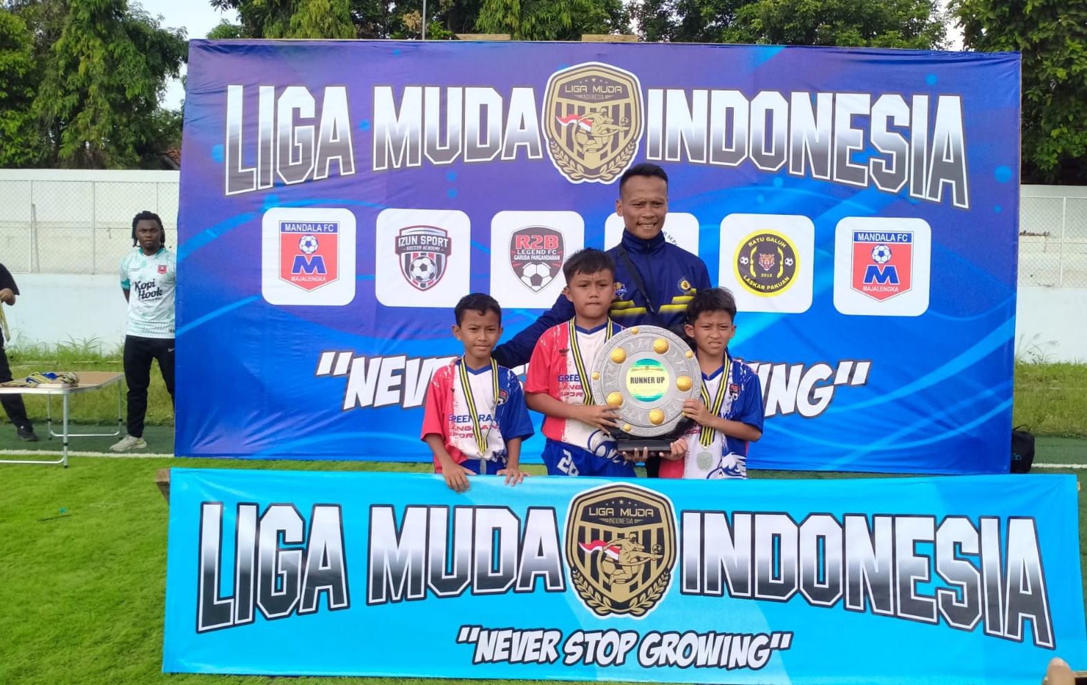 Mereka tergabung dalam tim SSB R2B Legend FC Garuda Pangandaran dan berhasil meraih posisi runner up atau medali perak.