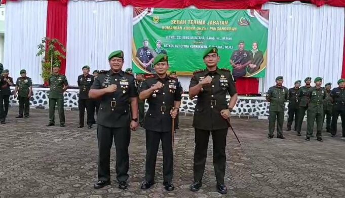 BERITA PANGANDARAN, PASUNDANNEWS.COM – Komando Distrik Militer (Kodim) 0625/Pangandaran menggelar acara lepas sambut Komandan Kodim, menandai pergantian kepemimpinan dari Letkol CZI Ibnu Muntaha, kepada Letkol CZI Citra Kurniawan, Kegiatan berlangsung khidmat dan dihadiri unsur Forkopimda, jajaran TNI, serta tamu undangan lainnya.