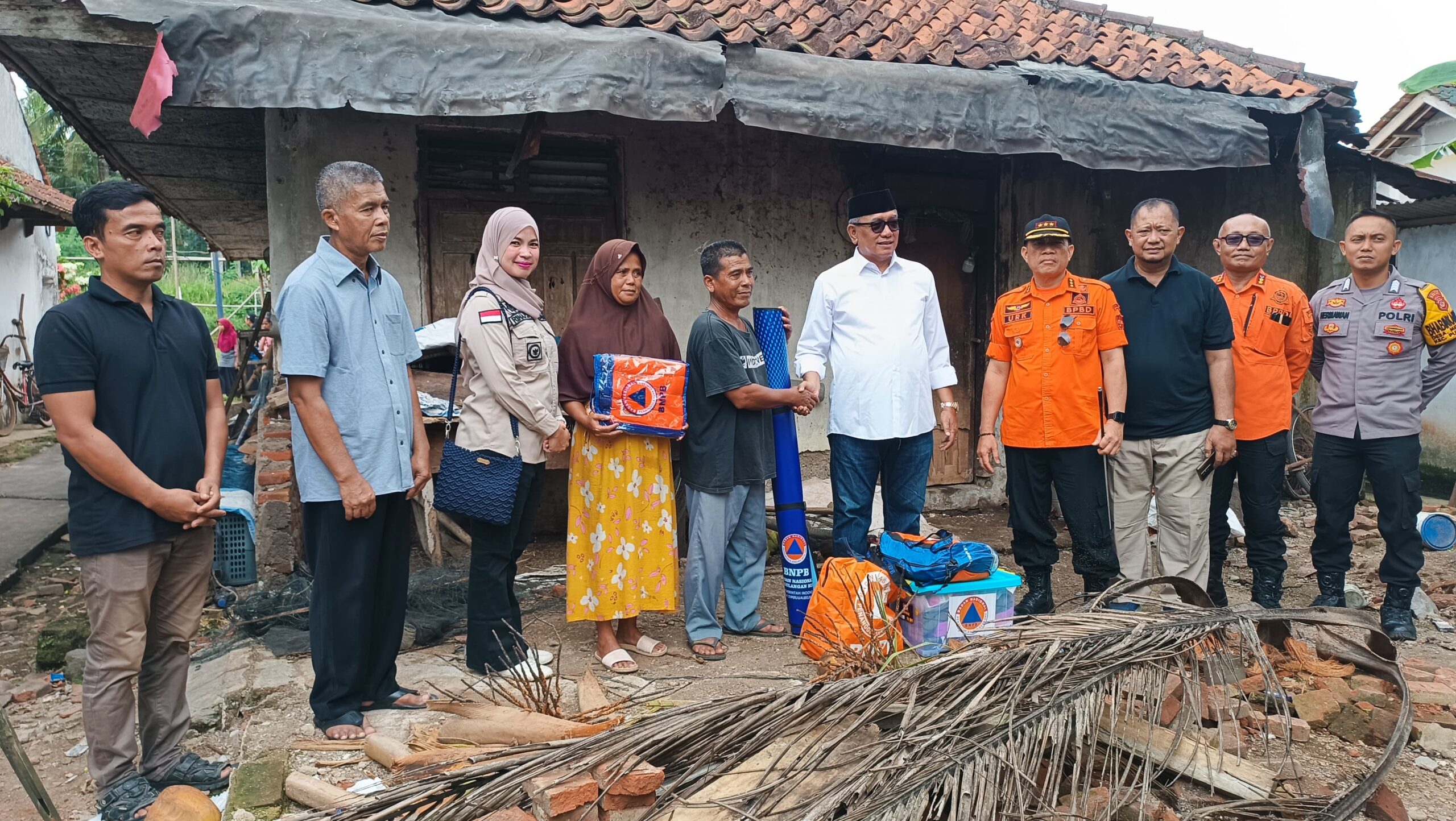 Bantuan logistik berupa terpal, selimut, dan perlengkapan darurat lainnya diberikan untuk membantu Aan dan keluarganya bertahan sementara waktu. Selain itu, pemerintah juga menyalurkan satu paket sembako sebagai dukungan kebutuhan harian.